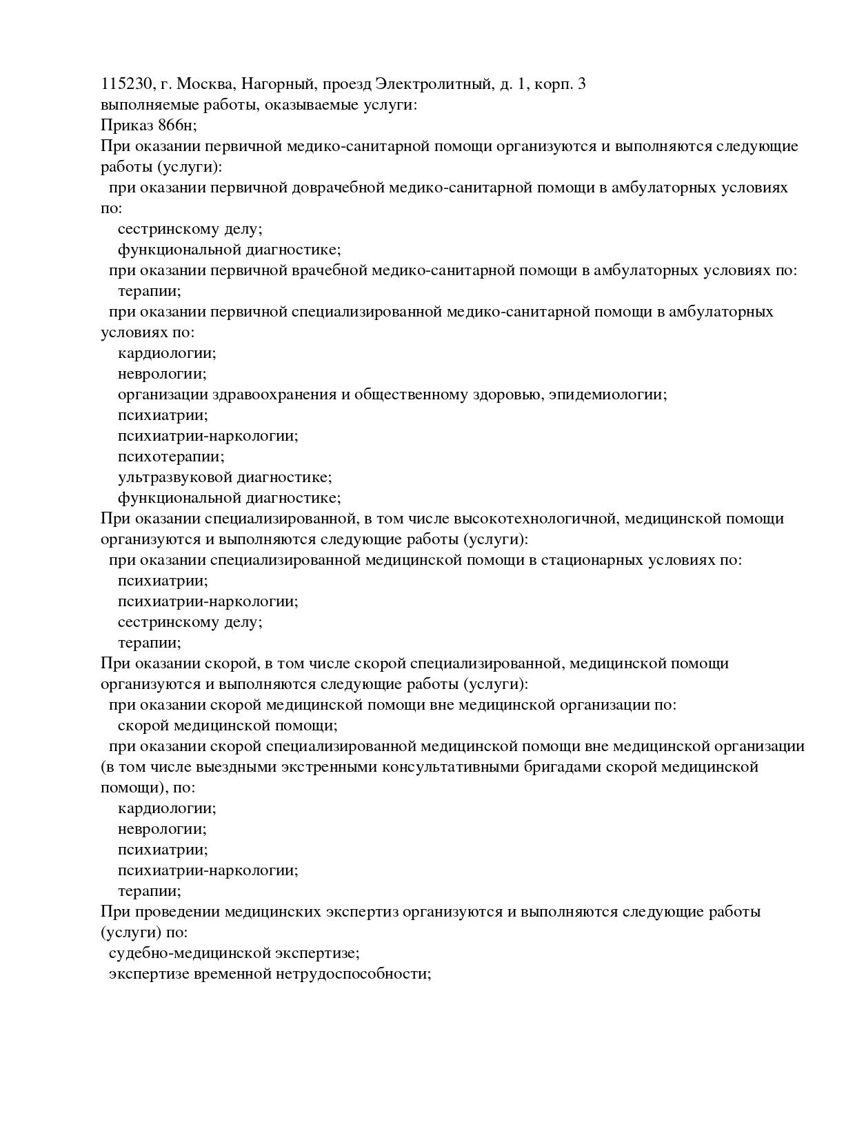 Медицинская лицензия с 1996 года